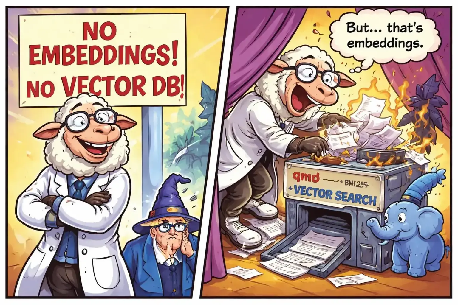 What they didn’t say: The pattern itself admits that the index.md approach only works at “small enough” scale. When the wiki grows beyond a few hundred pages, the LLM cannot read the entire index. The solution? Add qmd — a local search engine with BM25 and vector search.