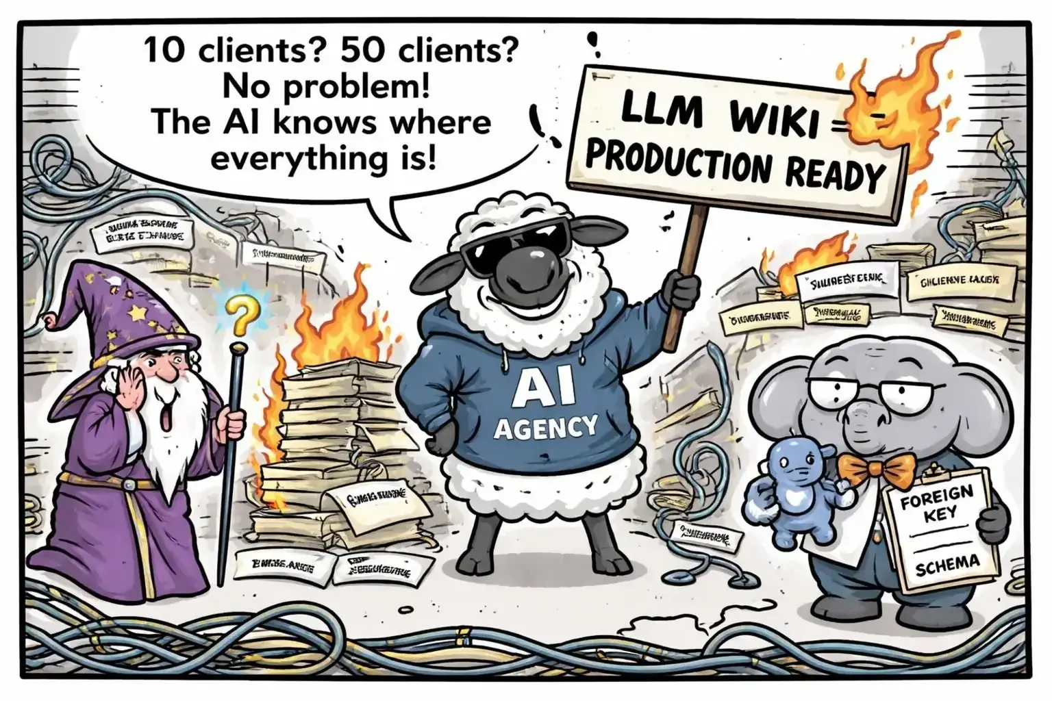 This satirical allegory critiques the trend of relying on Large Language Models (LLMs) to automatically generate and manage knowledge bases using simple Markdown files, portraying this approach as a naive "Shepherd's" promise that inevitably leads to data inconsistency, hallucinations, privacy leaks, and unmanageable maintenance. The text contrasts this fragile, probabilistic "LLM-Wiki" method with a robust, 23-year-old "Dynamic Knowledge Repository" (DKR) built on structured databases (like PostgreSQL) and Doug Engelbart's CODIAK principles, arguing that true knowledge management requires human curation, deterministic relationships, and explicit schemas rather than blindly following AI-generated text files. - Karpathy's LLM-Wiki Is a Flawed Architectural Trap